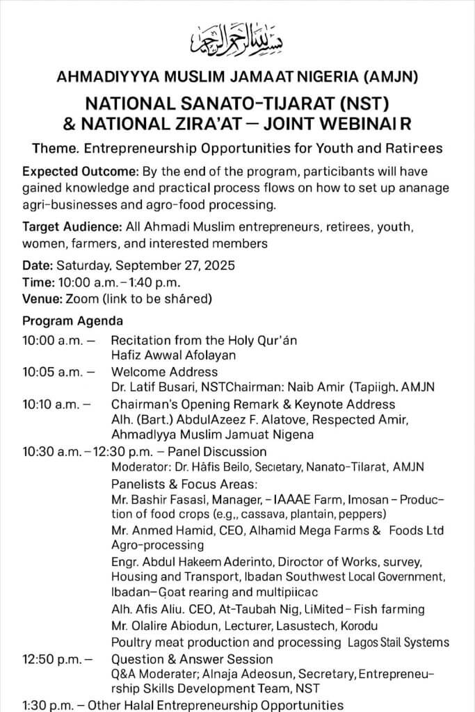 Target Audience: All Ahmadi Muslim entrepreneurs, retirees, youth, women, farmers, and interested members.